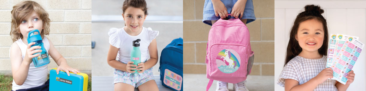 To make back to school extra fun you can get matching school supplies in the same design theme, perfect if you like to co-ordinate your children's belongings. You can also get a huge range of personalised school and lunch bags, drink bottles, bag tags and name labels, ideal for kids going to preschool, kindy & big school!