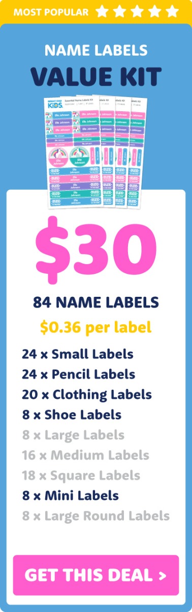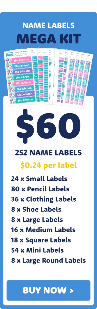 Name labels are a must-have for Daycare. Keep your kid’s stuff safe and avoid germy mix-ups with other kids at daycare. Choose from our three most popular Daycare name label value kits above. When you try these, you'll understand why they're the daycare labels Australia loves.