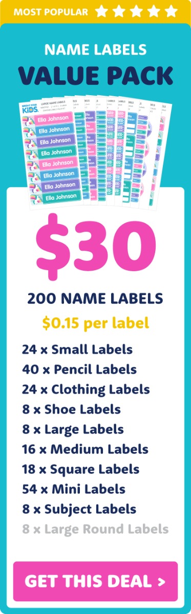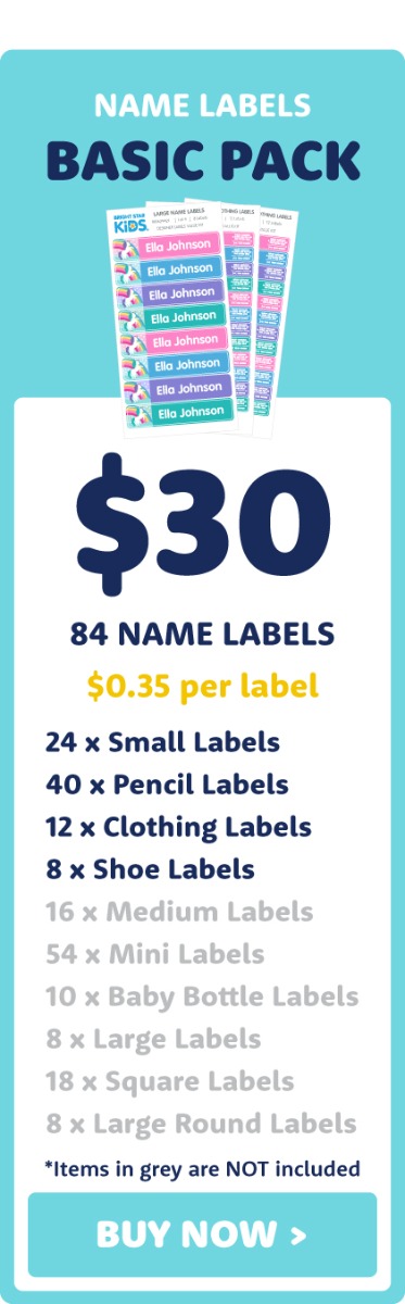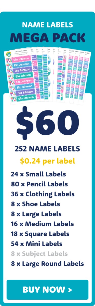 Name labels are essential for school. Keep your kid's stuff safe from being lost or stolen in class. Choose from our three most popular school name label value kits above. When you use these, you’ll understand why these school labels Australian parents have loved for over 18 years.